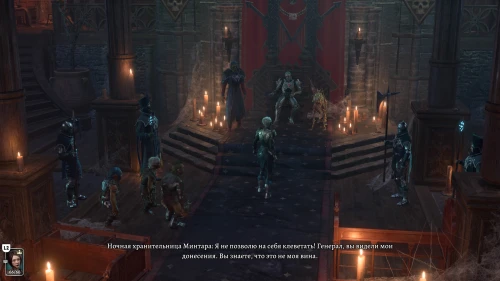 Как только вы войдете в зал где находится Кетерик, начнется катсцена, где он будет судить группу гоблинов и саму Минтару. Кетерик хочет приговорить Минтару к смерти, за то что она не выполнила его приказ и не нашла артефакт.