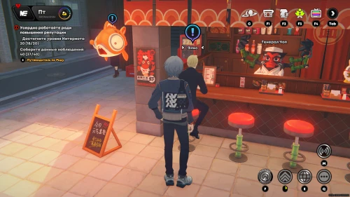 Далее дождитесь наступления дня и отправляйтесь в лапшичную Генерала Чопа. Там вы обнаружите мужчину в костюме по имени Элис, над головой которого висит восклицательный знак. Вступите с ним в диалог. Он попросит вас выкинуть монетку в бак, что приведет к началу миссии.