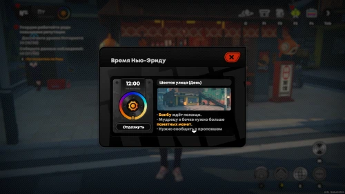 Напомним, что для смены времени необходимо кликнуть на круглую иконку в левом верхнем углу экрана, а затем нажать на кнопку «Отдохнуть». В этом окошке будет также демонстрироваться текущая фаза дня.