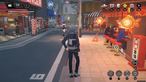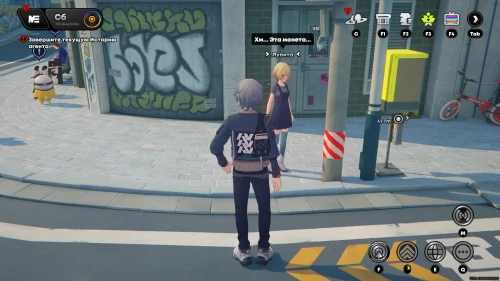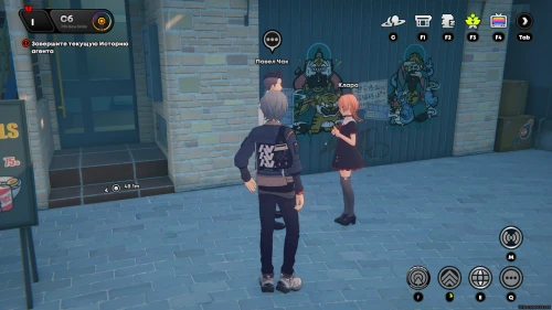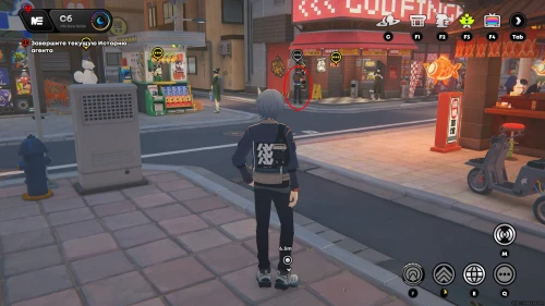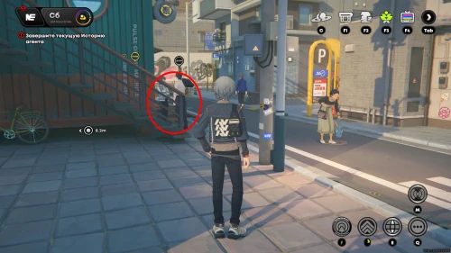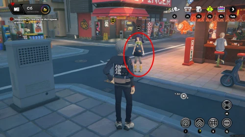 Напротив мастерской «Турбо» вы увидите розоволосую девушку по имени Клара. Она попросит вас сделать ее фото. Зажмите клавишу «F» для открытия панели быстрого доступа, нажмите на иконку объектива, а потом сфотографируйте блогершу. Снова пообщайтесь с ней, и она вручит вам монетку.