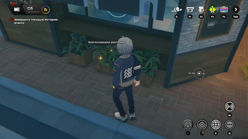 Идите в сторону кофейни и сбоку здания вы увидите клумбу. Подойдите к благоухающему растению и взаимодействуйте с ним для получения очередной монетки. Отметим, что с кустика должны исходить искорки. Если их нет, то попробуйте войти в видеопрокат, а затем снова выйти на улицу и нажать на клумбу.