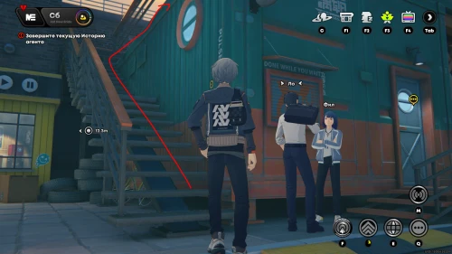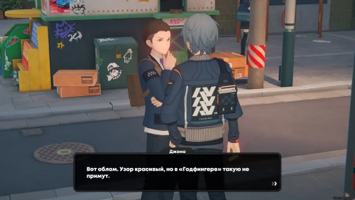 Снова обновите локацию и слева от входа в видеопрокат вы должны будете заметить двух парней, стоящих возле мастерской «Турбо». Послушайте диалог между Ло и Филом. Затем поднимитесь по лестнице сбоку на крышу здания и взаимодействуйте с пустым ящиком для нахождения монетки.