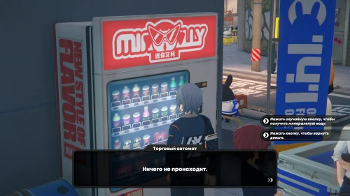 Обновите локацию и направляйтесь к торговцам банбу. Справа от них вы увидите девушку по имени Ханна. Пообщайтесь с ней. Затем пройдите немного назад, обойдя грузовик, и взаимодействуйте с торговым автоматом. Выберите любой вариант ответа и вернитесь к Ханне. После беседы с ней вы получите монетку.