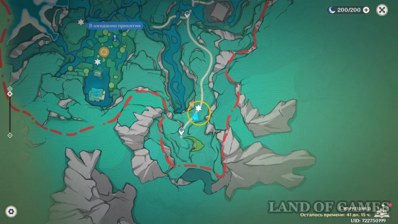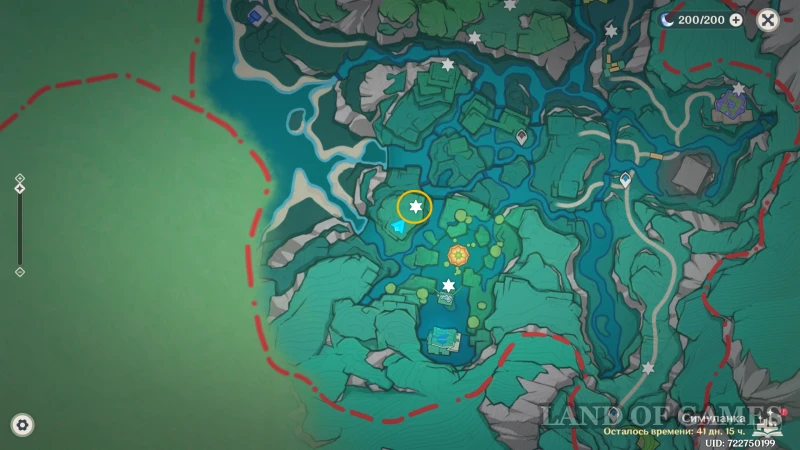 Еще чуть к северу, прямо под местом сбора прошлой птички, пролегает ущелье с ручьем: опуститесь к нему и увидите парящий в воздухе каменный куб, а над ним — 5-ю волшебную листовку.