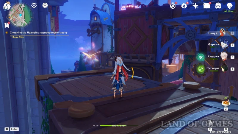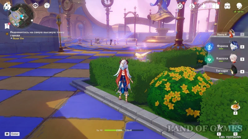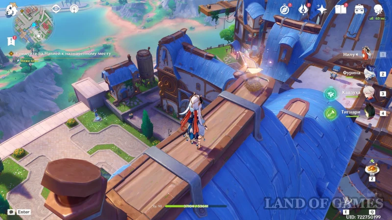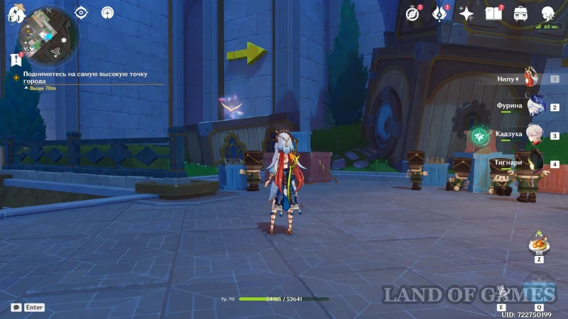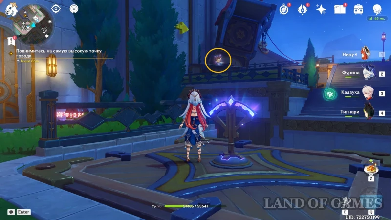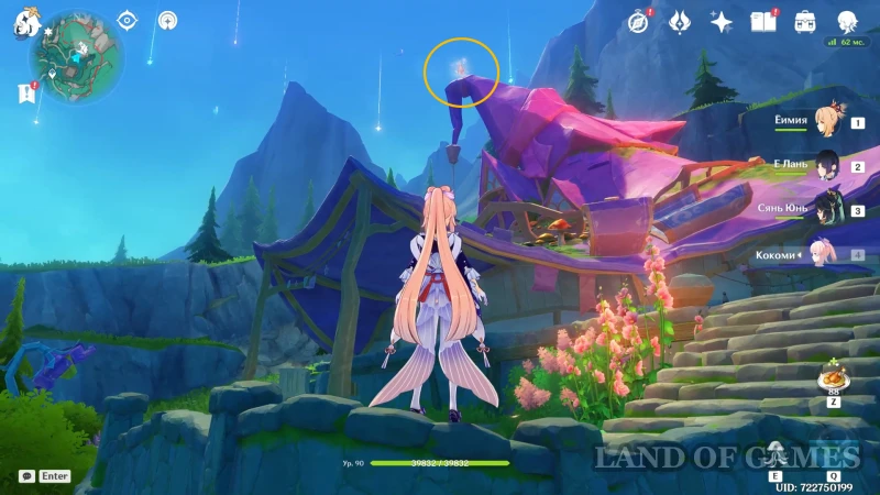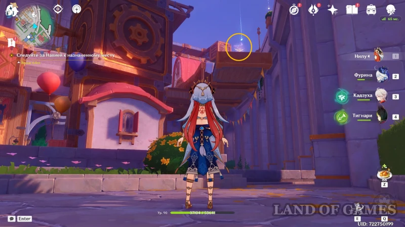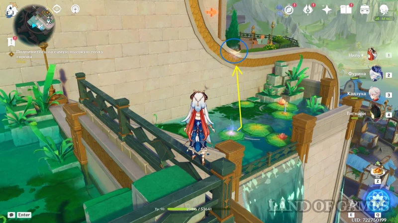 Получив предыдущею ценность, идите к тропе на запад: над ней стоит невысокая башенка с острой синей крышей, с которой можно залутать очередное Перо веселья.
