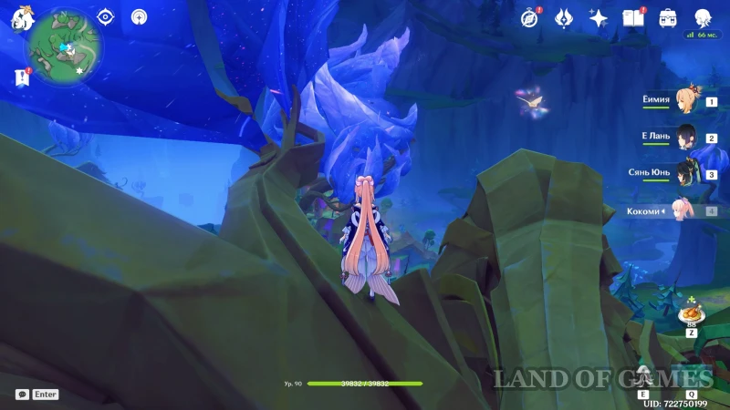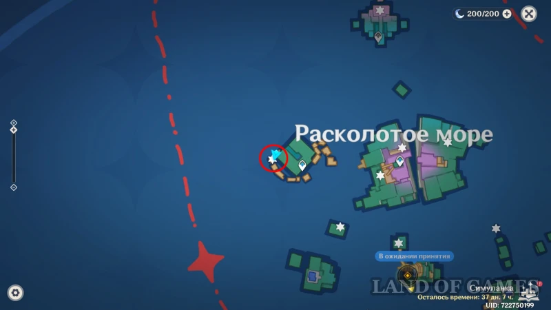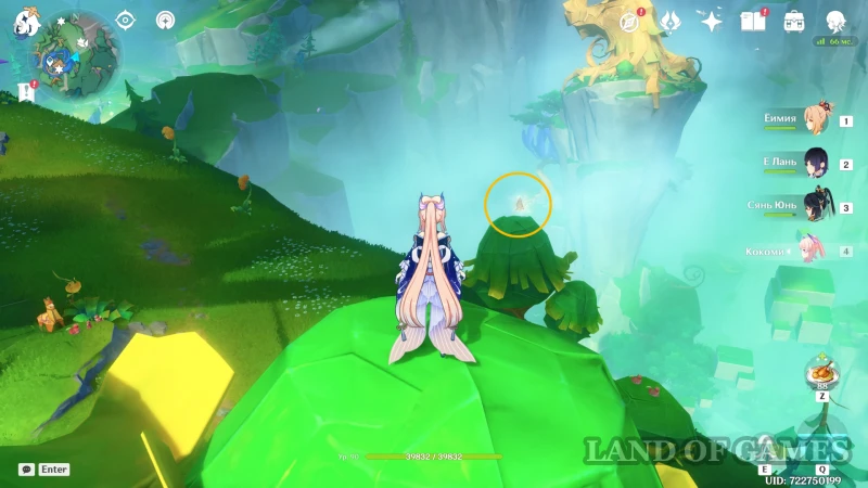 Теперь переместитесь к телепорту в юго-восточной половине Расколотого моря, а от него двигайтесь на север: сужающаяся тропинка из парящих земляных блоков приведет вас к очередному волшебному листочку.