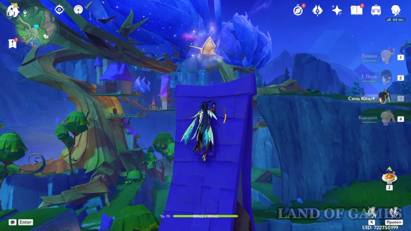 Проводите среднюю звезду за центральный монумент, а когда увидите золотистое мерцание с функцией «Осмотреть» — прыгайте с края острова вниз, прямиком за улетевшей звездой.