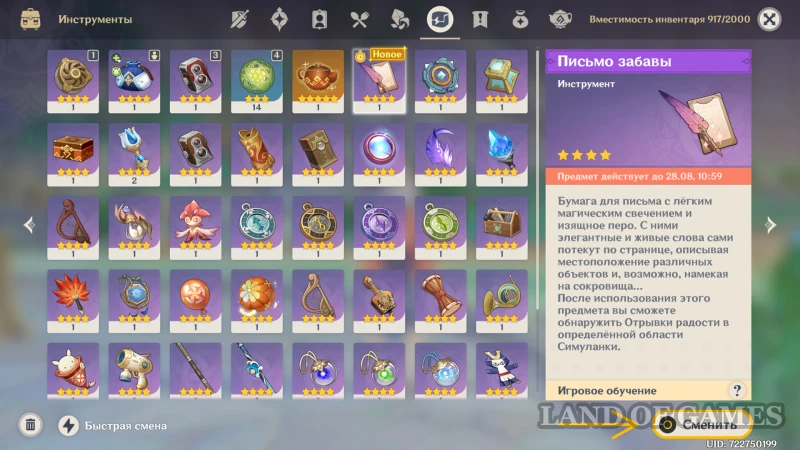 В будущем их количество увеличится, так как будут открыты дополнительные области региона. Вы можете упростить поиски, экипировав локатор «Письмо забавы», выдаваемый за достижение определенного количества собранных Отрывков радости (перейдите в раздел ивента → «Летние подарки» → «Подарочный костюм»).
