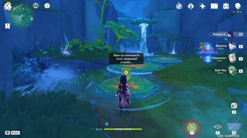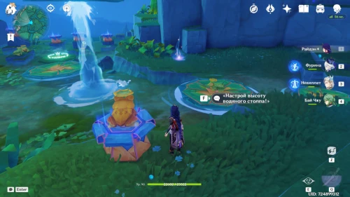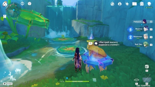 Подойдите к оранжевой лягушке и попросите ее настроить высоту водяного столба, чтобы опустить кувшинку.