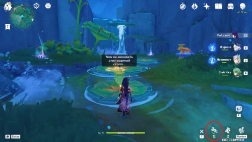Телепортируйтесь к Пруду песни дождя и пройдите на запад, к водопаду и кувшинке, стоящей на водяном столбе.