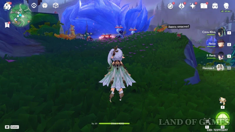 Первый челлендж расположен к востоку от полянки с роскошным сундуком: издалека можно увидеть белочку, предупреждающую «Здесь опасно!». Подойдите к месту испытания и победите небольшую группу хиличурлов, а затем залутайте обычный сундучок.