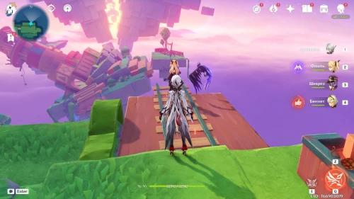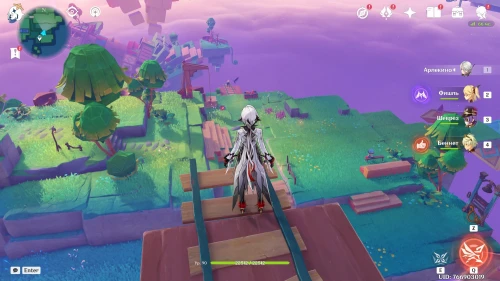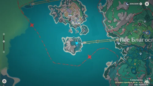Переместитесь к южному телепорту Расколотого моря (Симуланка), а затем бегите вперед и спрыгните с края обрыва на остров внизу. Впереди вы увидите Фишль и Оза – пообщайтесь с ними.