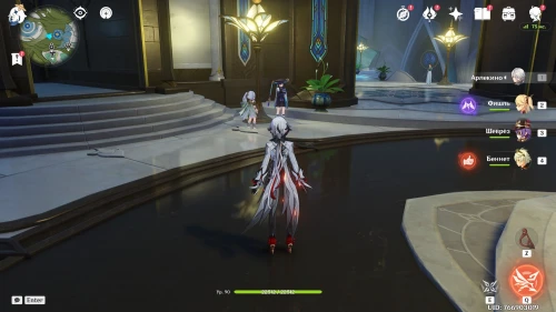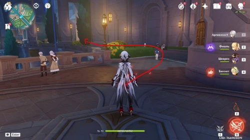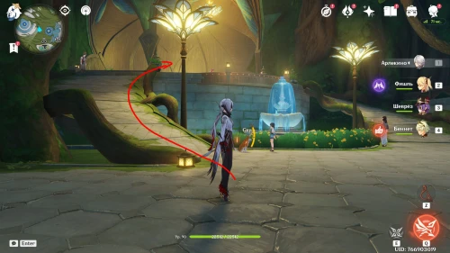 Этих и следующих персонажей вы сможете отыскать после прохождения квестов «Послесловие» и «Темная текстуальная тайна». Переместитесь к телепорту возле входа в Академию Сумеру, а затем войдите в нее, обойдите фонтан с левой стороны, и вы увидите впереди Нахиду и Странника.