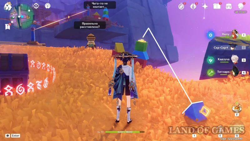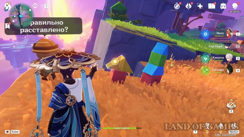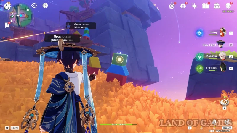 В Genshin Impact разноцветные блоки являются видом интерактивных головоломок, расположенных в Расколотом море – северной территории ивентового региона Симуланка. На парящих островах вы встретите много сказочных существ, столкнувшихся с проблемой: их изваяния из игрушечных деталек сильно повреждены, и вам нужно помочь с восстановлением конструктора.