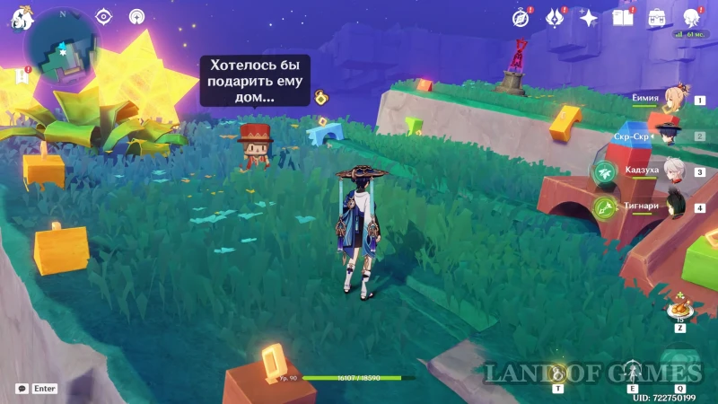 Поднимитесь к поляне на северо-западной половине центрального острова: тут стоит красный солдатик в шляпе, который хочет подарить кому-то дом, а нам нужно осуществить его желание.