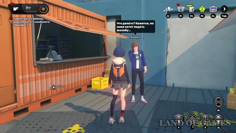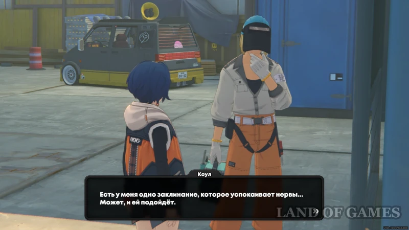 Бегите влево от припаркованного авто прокси и поднимитесь на площадку с двумя оранжевыми торговыми контейнерами – здесь стоит расстроенный Кайдо. Предприниматель случайно уронил монетку в пакет с обедом мишки-рабочего и сильно сожалеет.