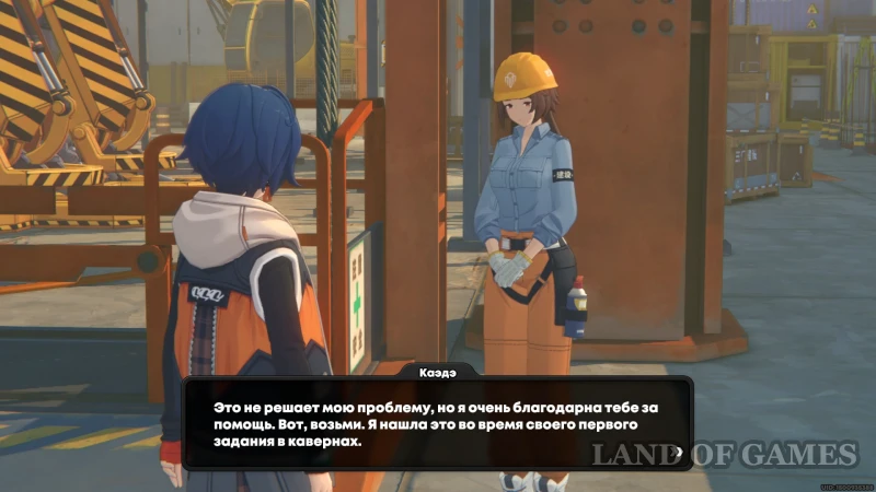 Сначала узнайте у парня в каске суть проблемы, а затем подойдите к трубам и кликните на плашку «Угрюмый стройкабу» (клавиша «F» на ПК). Банбу, которого ранее осмеяли за трусость перед кошкой, сделает несколько выводов и выйдет из укрытия. В конце опять подойдите к парочке и поговорите со стройкабу – в благодарность за ободрение, кролик вручит золотой жетон.
