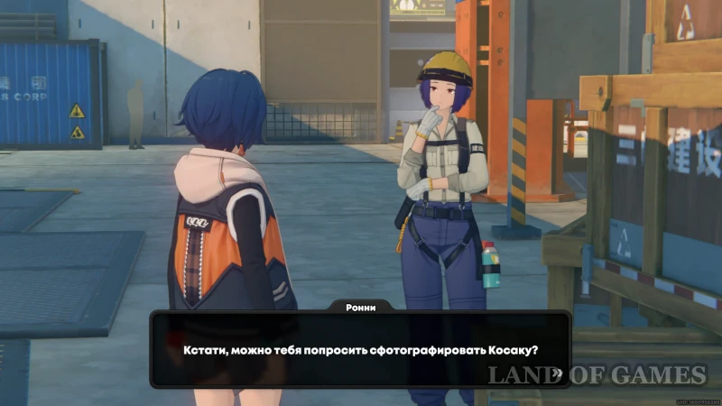 Также утром поговорите с Ронни, которая задумчиво стоит около раскопанной строительной площадки: из-за небольшой задержки в проекте, одного из ее коллег, Косаку, лишили звания лучшего работника месяца. Девушка хочет загладить вину и тайком выдвинуть его кандидатуру вновь, а для этого нужно получить новое фото.
