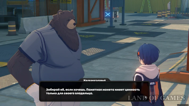 В отличии от остальных локаций, на стройплощадке нет мерцающих объектов, за рассматриванием которых можно наткнуться на монетку – все жетоны выдаются только после определенных цепочек общения со строителями и иными обитателями рабочей зоны. Замечайте круглое серое облачко с диалогом над НПС, которое намекает на ивент с жетоном АИК.
