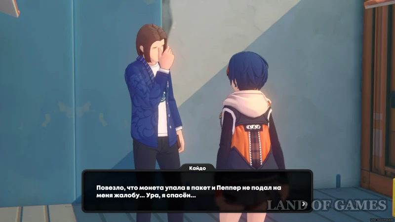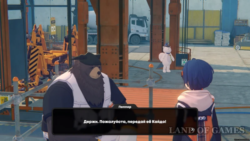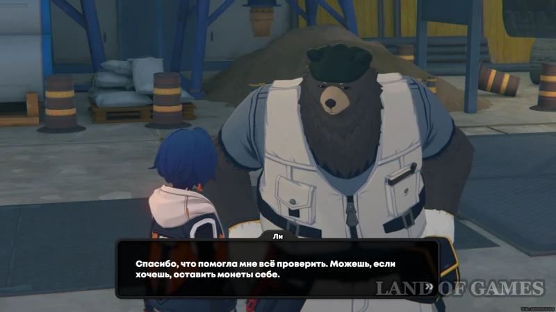 Чтобы разобраться, поговорите с медведем Пеппером (он сидит напротив, около подъема к контейнерам). Окажется, что пострадавший даже не понял ситуации, поэтому вернемся и обрадуем Кайдо, забрав в награду злосчастный жетон.