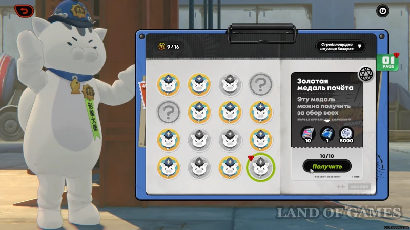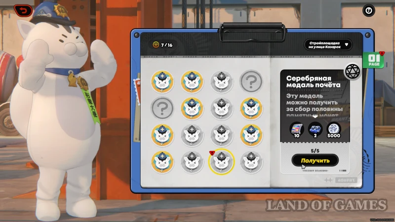Оставшиеся награды можно собрать у Мяучело на стройплощадке: два задания на серебряную и золотую медали принесут нам 20 полихромов и еще немного расходных материалов.