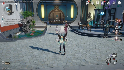 При выборе направления истории обязательно нажмите на кнопку «Возможно, у нас есть и другие способы победить…». Далее развернитесь и поговорите с Цинцюэ, стоящей возле воды. Теперь можете переместиться к Причалу Переулка ауруматонов. После этого тут же начнется новая кат-сцена.