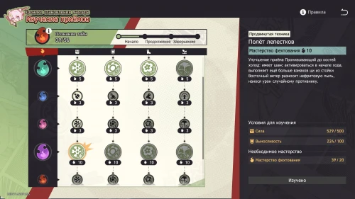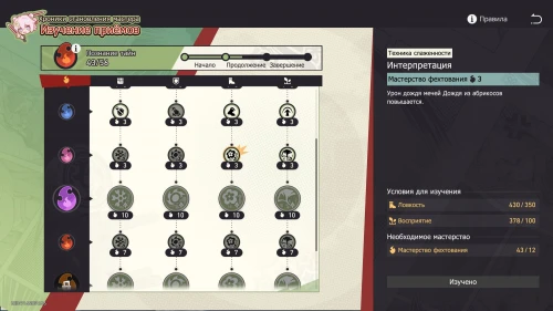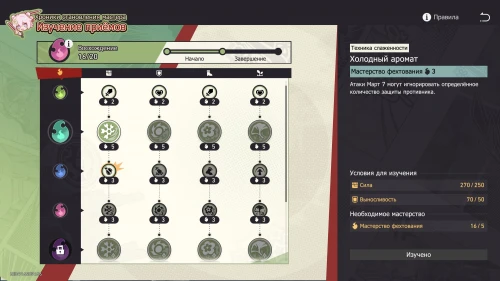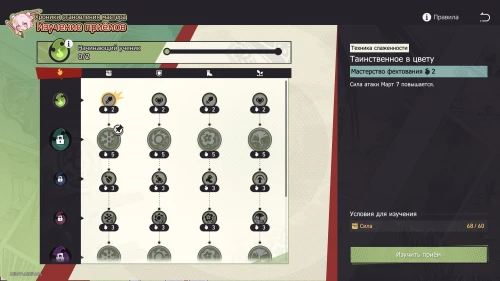 Для овладения приемом необходимо вначале повысить определенные характеристики девушки и достичь конкретного уровня Мастерства фехтования. Занимаясь освоением приемов, вам удастся накапливать Мастерство фехтования, которое в свою очередь может повысить ваш уровень, улучшив способности Март 7.