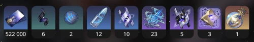 - Возвышение (60 уровень): кредиты х32000, искаженные амбиции х8 и снежный рог х5;