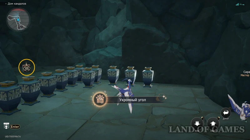 Далее нам нужно переключить нижний нефритовый блок на зеленый режимы (положение верхнего не имеет значение). Таким образом, с обратной стороны лифта появится тайный проход в подземелье, внутри которого спрятан роскошный ларец, перекрытый выставленными углом вазами и еще одна птица-доставщик Сиратори. Попав в это место, нам откроется ачивмент «Укромный угол».