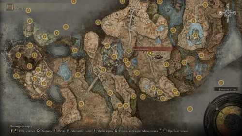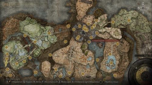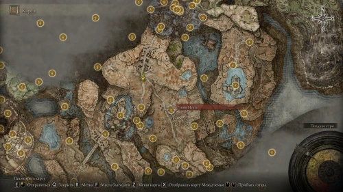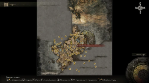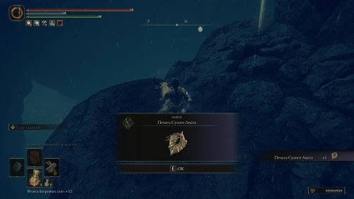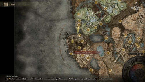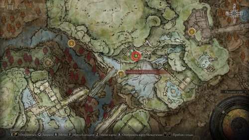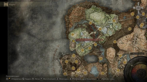 Перепрыгните на другую сторону и следуйте по тропе на северо-восток. Необходимые предметы находятся на небольшом островке с призрачными надгробиями. Спуститесь чуть ниже к золотому кресту и заберите первую часть комплекта — Печать сухого листа.