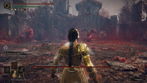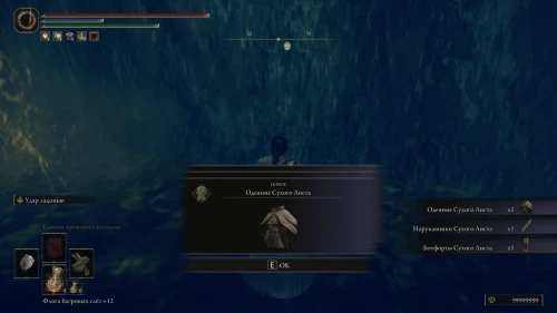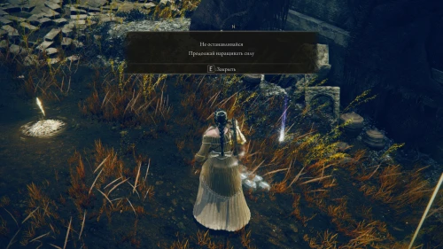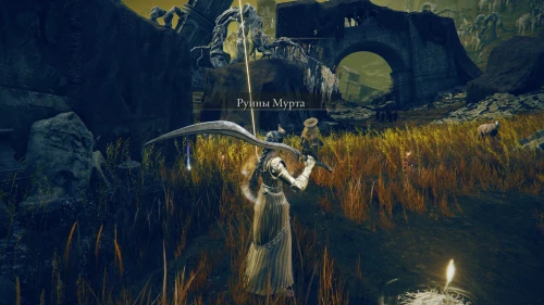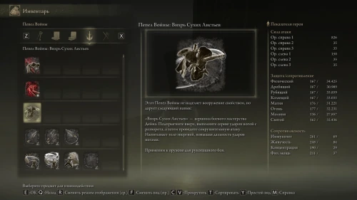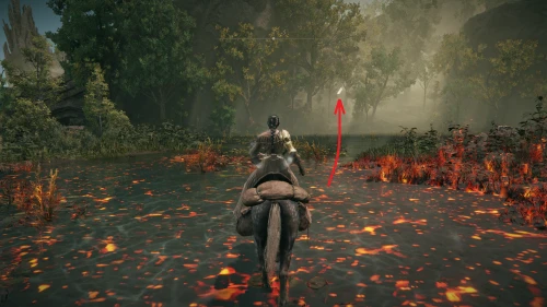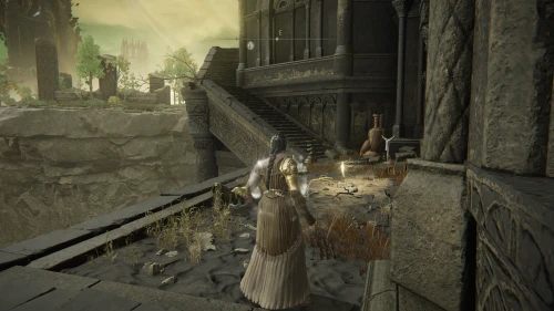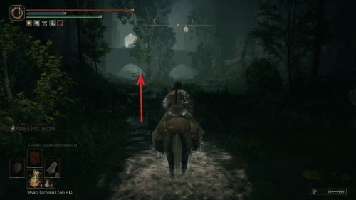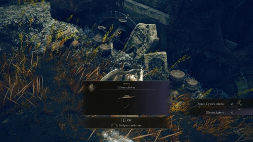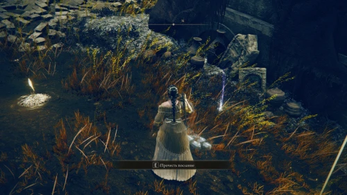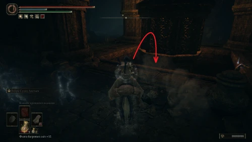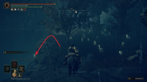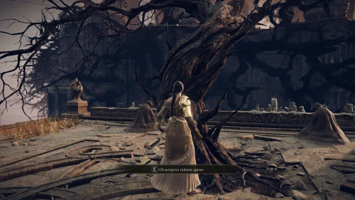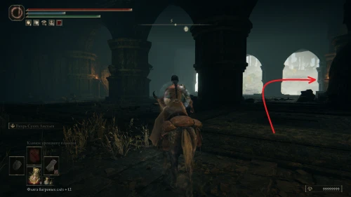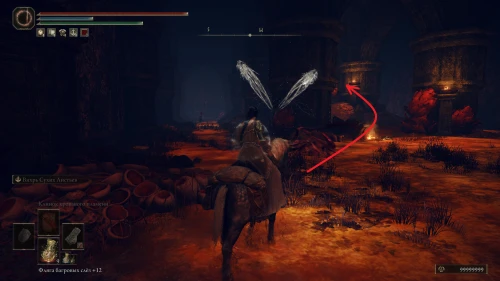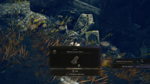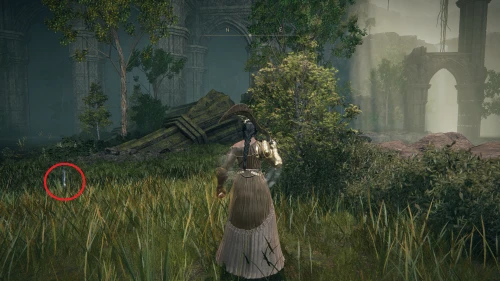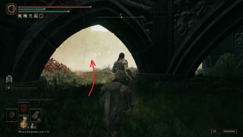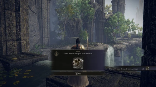 Также если от этого места вы проследуете чуть дальше на восток, за колонной вы увидите Пепел войны: Вихрь сухих листьев. Его можно применить, для усиления оружия рукопашного боя.