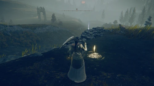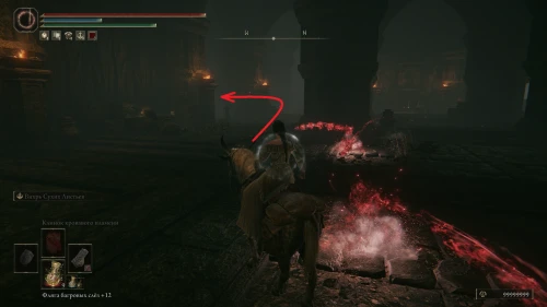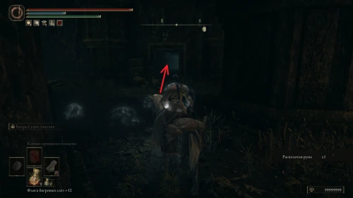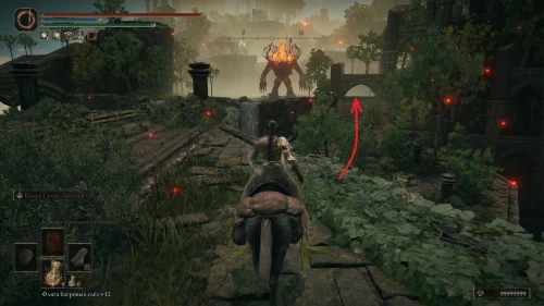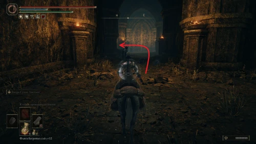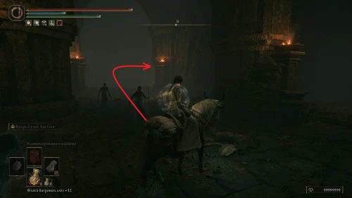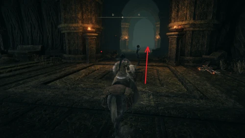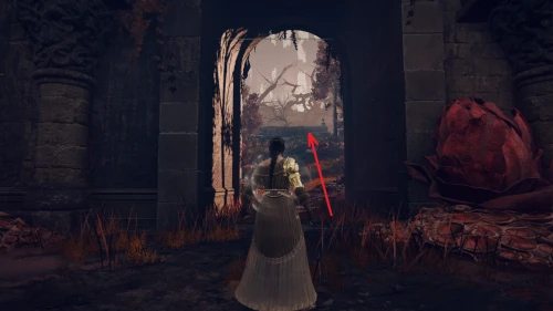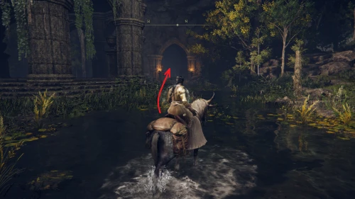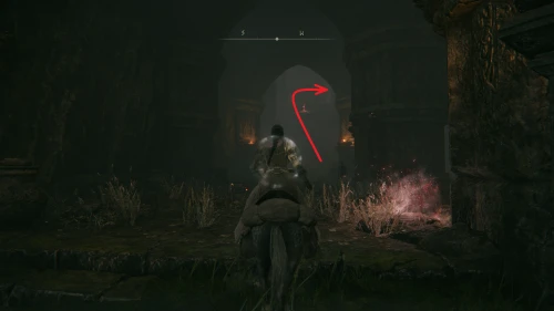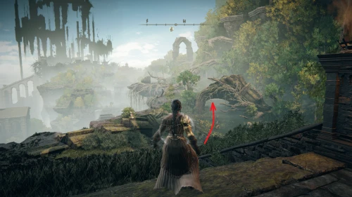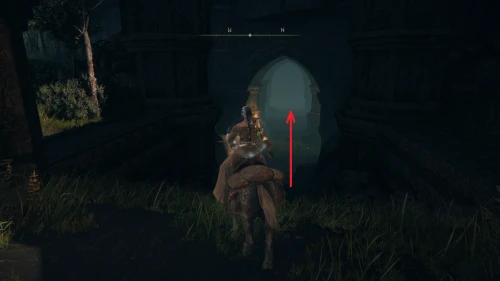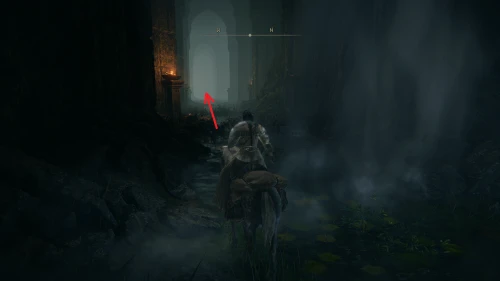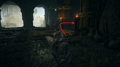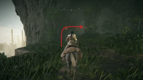 Первая точка благодати, от которой следует стартовать — «Малая башня у виадука». Выйдите из башни и следуйте на восток, где вскоре вы увидите справа вход в руины. Продолжайте идти вглубь руин, пока не увидите огромную дверь, поверните от нее налево и скачите дальше.