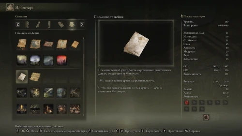 Рядом с этой благодатью вы можете обнаружить Послание Дейна, в котором говорится о том, что он нашел тайное древо, преграждающее путь в Энир-Илим. Для того чтобы его сжечь, необходима именно Лучина Мессмера.