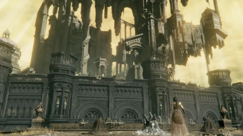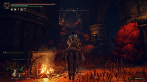 От благодати двигайтесь вперед на юго-запад, затем сверните направо и прыгайте вниз на следующий мост. Следуйте вперед и сверните налево туда, где находится Великан печи. Продолжайте путь на юго-восток, пока не увидите следующий телепорт «Руины обители Рауха, запад».