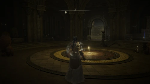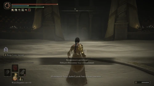 Далее скачите на северо-запад, где находится вход в очередные развалины. Посреди зала вы увидите огромную лестницу, следуйте по ней, пока не обнаружите еще одну точку «Храм цветочных бутонов, главный вход». Зайдите в туман и сразитесь с Роминой. Перед боем с ней можно призвать Дейна с помощью знака.