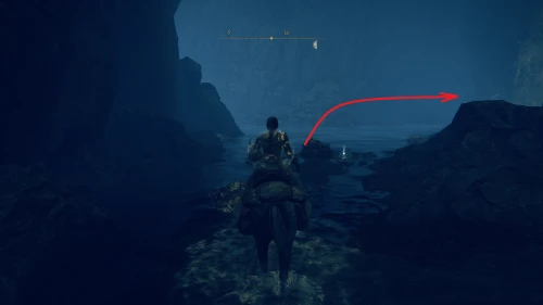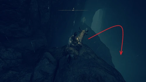 Далее вы увидите спуск вниз, прыгайте и скачите на юго-восток по небольшому туннелю. Выйдя в большой зал, поверните направо и зайдите в следующую часть руин, где на северо-западе вы снова увидите спуск вниз.