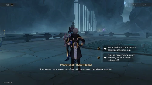 Далее телепортируйтесь в любой другой район, а потом возвратитесь обратно к телепортационной точке «Ледяная тюрьма I». Развернитесь, и вы обнаружите перед собой Новенькую тюремщицу. Подойдите к ней для старта разговора. Можете выбирать любые ответы, так как они ни на что не повлияют.