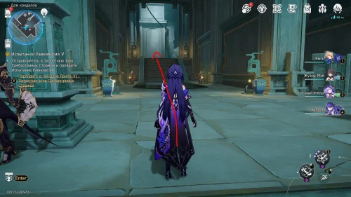 Первым делом вам необходимо будет завершить квестовую линейку «Поединок под лазурным небосводом I». Далее телепортируйтесь к якорю «Скрипторий: Перед входом» на Этаже 1 в Доме кандалов. Развернитесь и двигайтесь в западном направлении, поднявшись по лестнице наверх. Далее сверните влево и войдите в здание, пройдя по ступенькам.