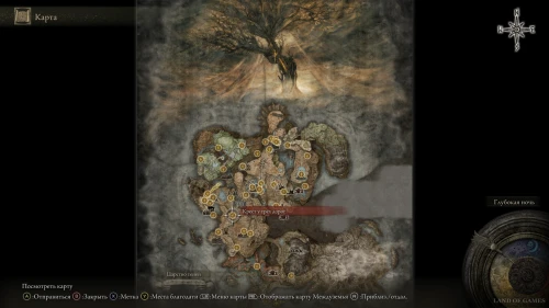 Святая Трина находится в скрытой локации Фиолетовый сад, которая расположена на южном побережье. О том, как найти карту побережья, если вы ее еще не открыли, подробно описано в этой статье. Достигните точки благодати «Лазурное побережье» и следуйте на юг, минуя Дракона Смерти. Дойдя до обрыва, поверните направо и следуйте по дороге со светящимися червями, пока не увидите великана. Идите вперед, держась правой стороны, пока не заметите огромный разлом.