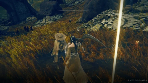 Добравшись до нового региона, отыщите обрывок карты Равнины Надгробий и направляйтесь к месту благодати «Крест у трех дорог». Здесь вы обнаружите Фрейю – женщину в золотых доспехах. Вступите с ней в диалог несколько раз, пока у нее не начнут повторяться фразы. Подробное прохождение ее задания можно прочитать в отдельном гайде.