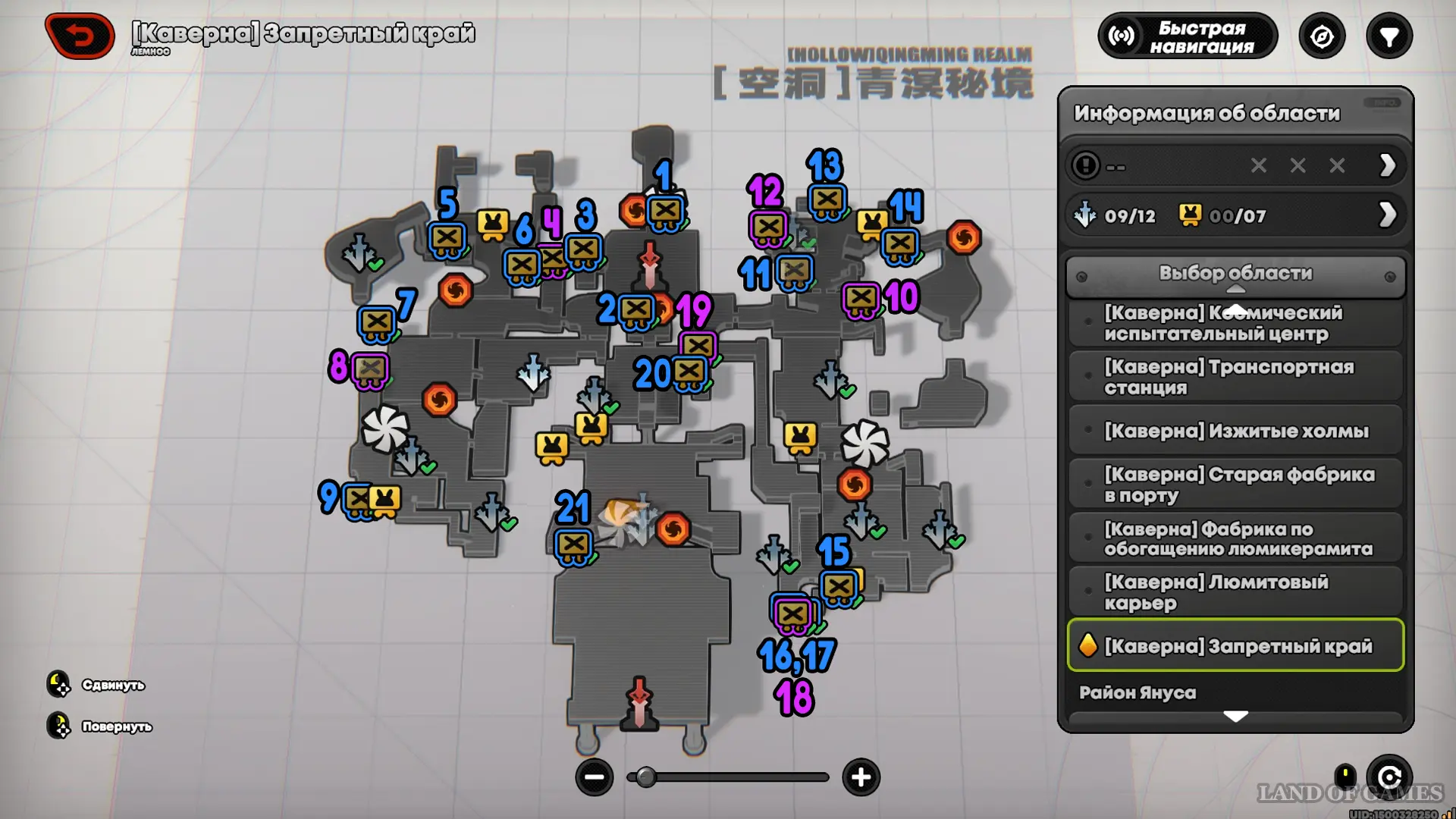 Несмотря на обилие иконок с активностями в этой каверне, непосредственно грузовиков здесь всего 17 — для них предусмотрен отдельный счетчик на панели информации об области. Мы в деталях показали их расположение в отдельном руководстве.