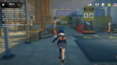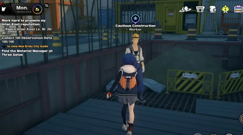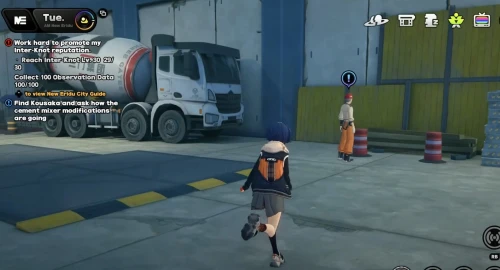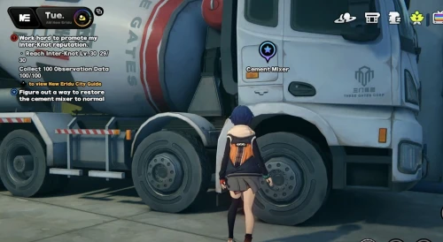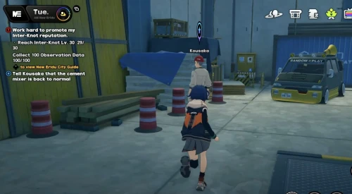 Вам предстоит выполнить небольшой квест «Руководство по безопасности при модификации бетономешалок», доступ к которому открывается после достижения 33-го уровня Интернота. Переместитесь к «Ремонтной зоне», развернитесь, и вы увидите Косаку рядом с бетономешалкой – поболтайте с ним для старта задания.