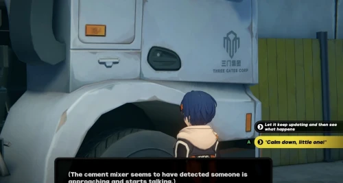 Возвратитесь к Грейс и передайте ей снимок. Потом снова взаимодействуйте с бетономешалкой и выберите новый ответ «Успокойся, малыш!»