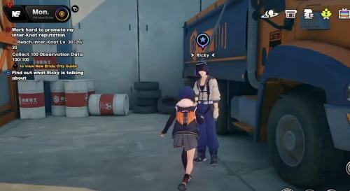 В указанное время переместитесь к инспектору Мяучело, а затем пройдите позади него к деревянным ящикам возле подъемника. На них будет стоять Бробу – поболтайте с ним для завершения указанного поручения.