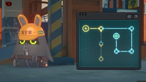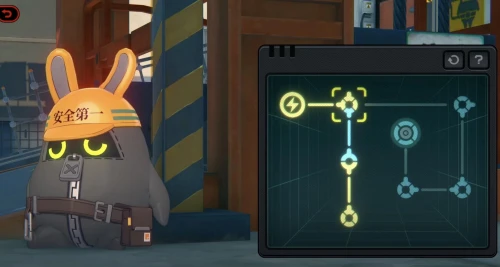 Далее начните поворачивать элементы цепи, чтобы подать питание к кружку внизу. На скриншоте ниже показан финальный результат. Потом еще немного пообщайтесь с банбу для завершения поручения.