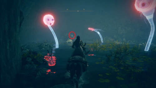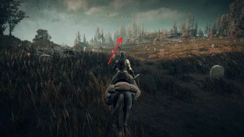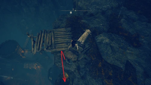 В локации Лес бездны, от точки «Заброшенная церковь», двигайтесь на запад, пока не дойдете до небольшого озера с несколькими предупреждающими сообщениями.