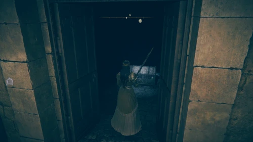 Идите в юго-западную часть руин и пройдите по лестницам на крышу так, как показано на скриншотах ниже. Открыв дверь, вы увидите сундук, в котором будет спрятан Клинок Милосердия.