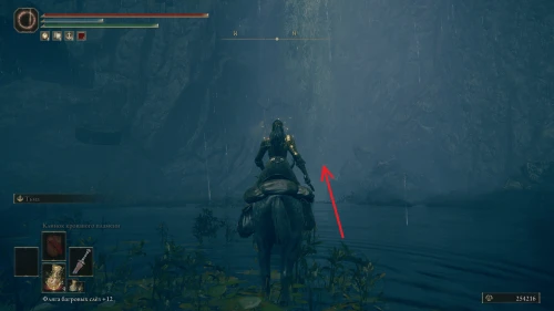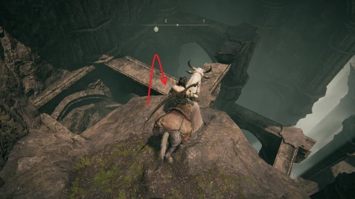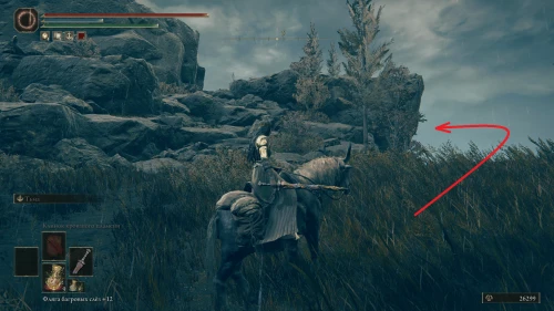 Поднявшись, сразу сверните налево и спрыгните вниз. Оттуда необходимо добраться до скалы на юго-востоке, как показано на скриншотах. Зайдите в северный вход, который будет вести прямо до сундука с талисманом.
