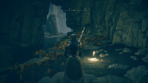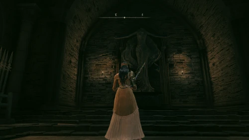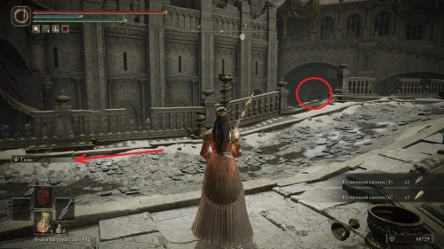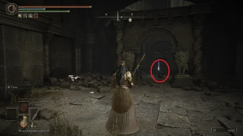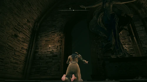 От телепорта «Пристанище теней, задние ворота», поверните в комнату направо где будет стоять большое изваяние Марики. Примените к ней жест и статуя отодвинется, открыв проход к новой точке «Внутренние земли».