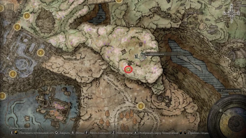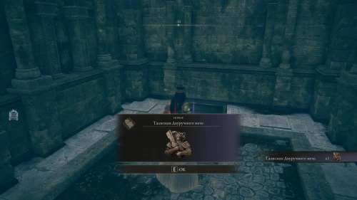 Талисман находится в сундуке, в локации Равнина надгробий, недалеко от точки «Обугленные руины». Если от благодати посмотреть в сторону юго-востока, можно сразу увидеть башню, в которой находится клинок.